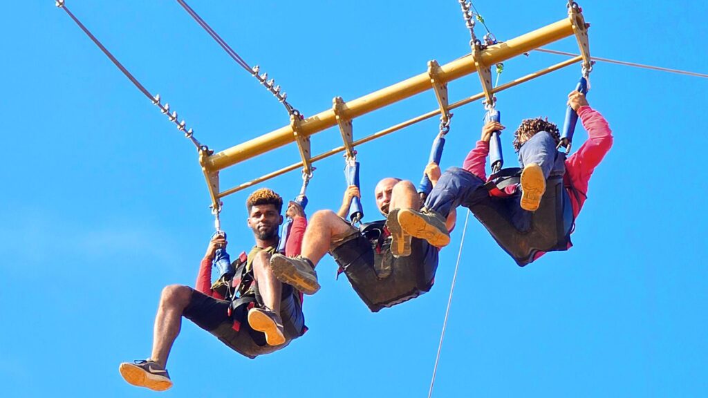 Take Off and Fly: Once you reach the selected height, the operator will count down—a moment that will get your heart racing and send your adrenaline soaring: 3..2..1..Goooo!! You’ll be released, and in a free fall lasting nearly 2 seconds, you’ll reach a speed of almost 70 km/h and be launched 78 meters into the void, beginning to swing until you come to a gentle, gradual stop. Once you’ve come to a stop, the operator will begin the release procedure, and you’ll be free to take another ride, head to the giant “SuperSlide,” or fly down the magnificent Zipline!